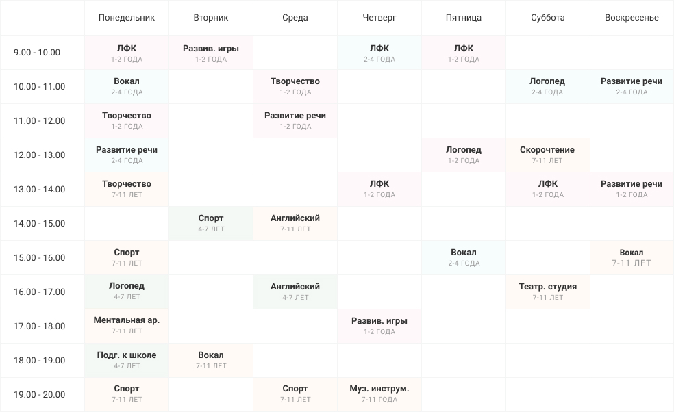 Логопед Английский язык Развивающие игры Вокал |